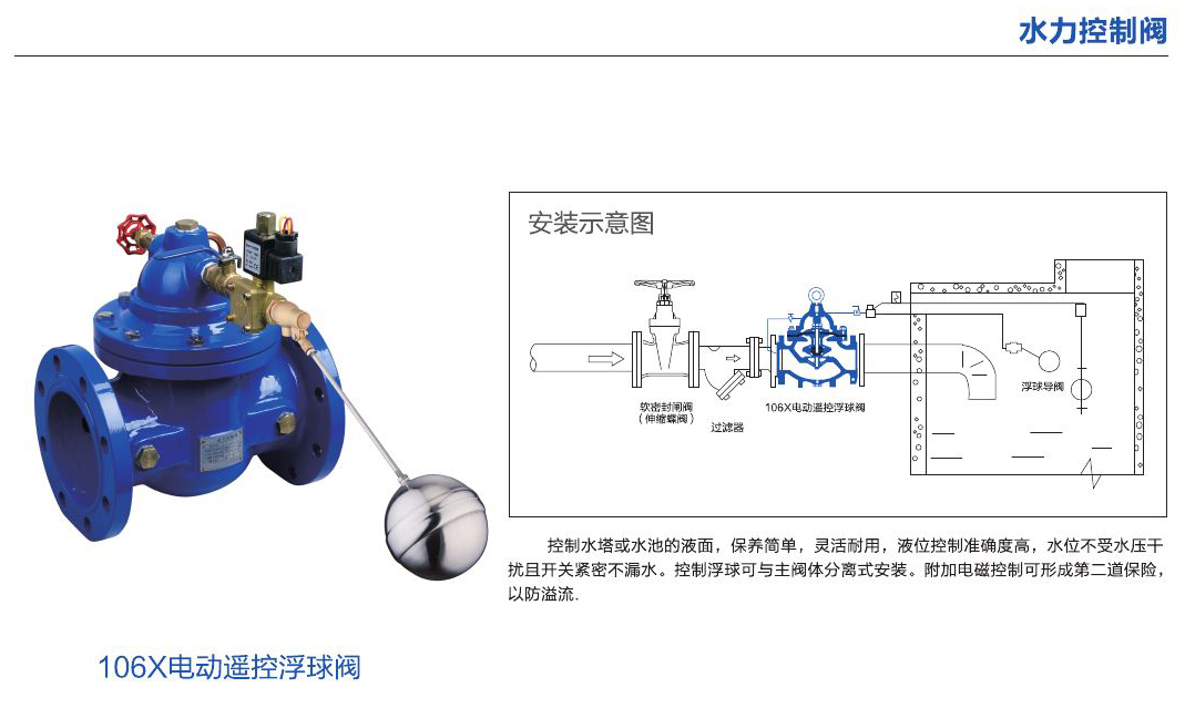 - 控制水塔或水池的液面,保養(yǎng)簡單,靈活耐用,液位控制準(zhǔn)確度高,水位不受水壓干擾且開關(guān)緊密不漏水。