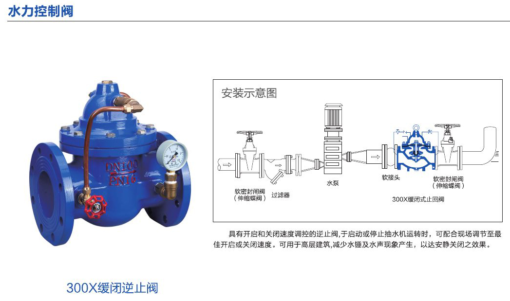 - 具有開啟和關(guān)閉速度調(diào)控的逆止閥,于啟動或停止抽水機運轉(zhuǎn)時,可配合現(xiàn)場調(diào)節(jié)至開啟或關(guān)閉速度。