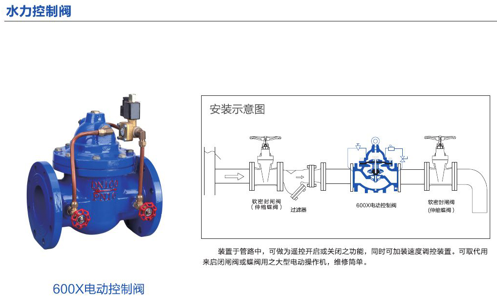 - 裝置于管路中,可做為遙控開啟或關(guān)閉之功能,同時(shí)可加裝速度調(diào)控裝置。
