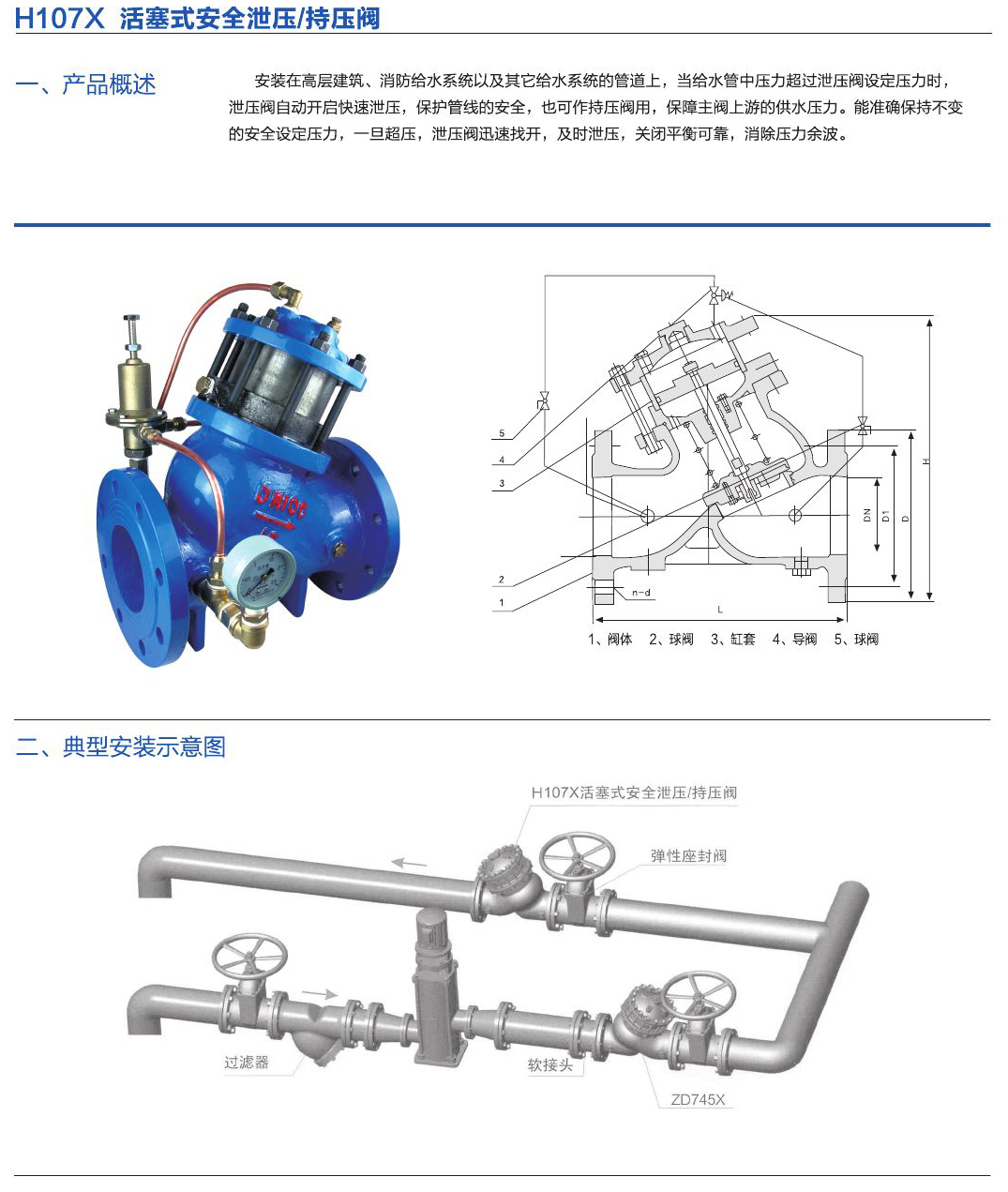 - 安裝于高層建筑、消防給水系統(tǒng)以及其它給水系統(tǒng)的管道上,當(dāng)給水管中壓力超過泄壓閥設(shè)定壓力時,泄壓閥自動開啟快速泄壓,保護(hù)管線的安全,也可作持壓閥用,保障主閥上游的供水壓力。