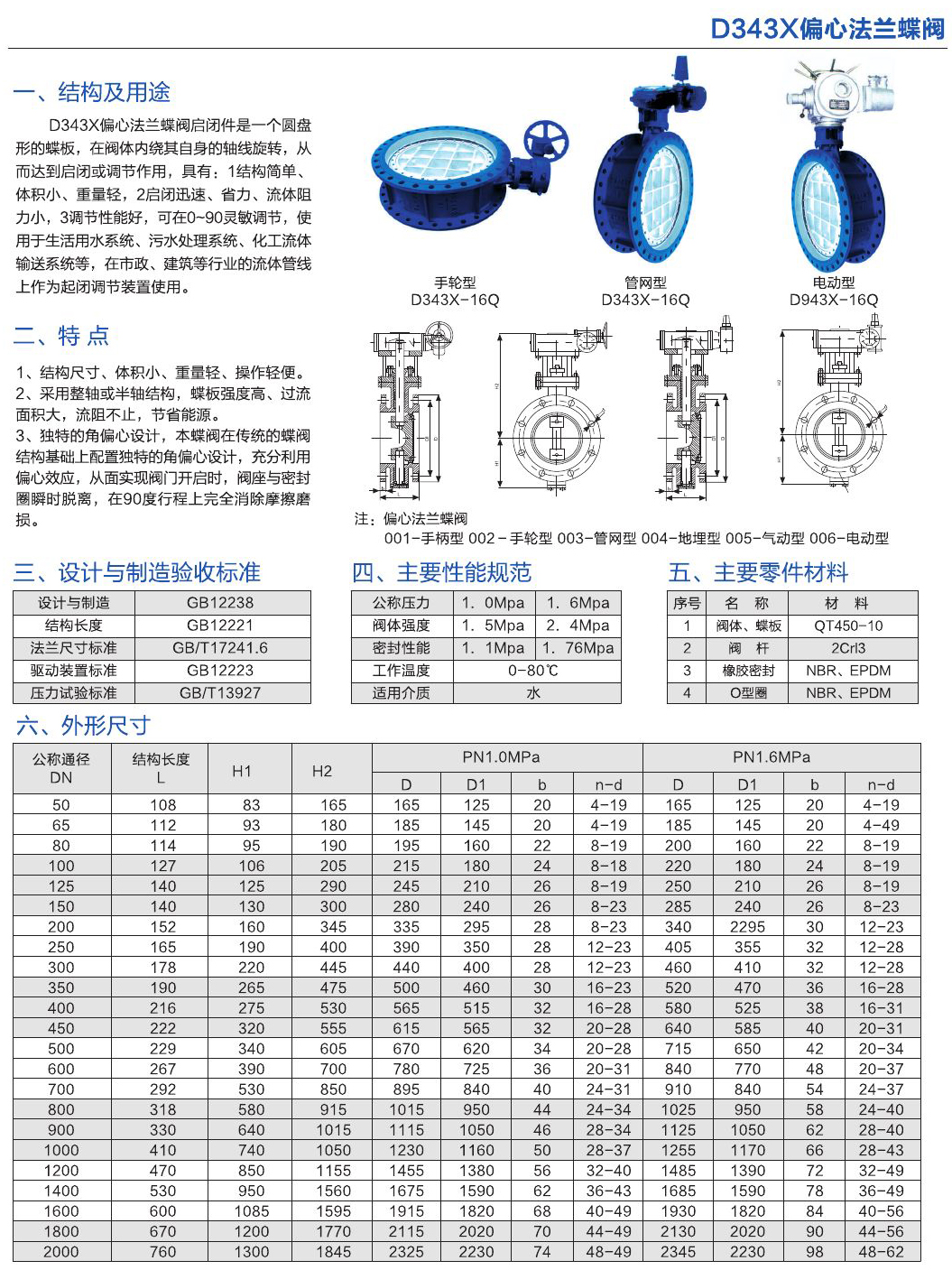 - D343X偏心法蘭蝶閥啟閉件是一個(gè)圓盤(pán)形的蝶板,在閥體內(nèi)繞其自身的軸線旋轉(zhuǎn),從而達(dá)到啟閉或調(diào)節(jié)作用,具有:1結(jié)構(gòu)簡(jiǎn)單、體積小、重量級(jí)輕,2啟閉迅速、省力、流體阻力小,3調(diào)節(jié)性能好,可在0-90靈敏調(diào)節(jié),使用于生活用水系統(tǒng)、污水處理系統(tǒng)、化工流體輸送系統(tǒng)等,在市政、建筑等級(jí)行業(yè)的流體管線上作為起閉調(diào)節(jié)裝置使用。