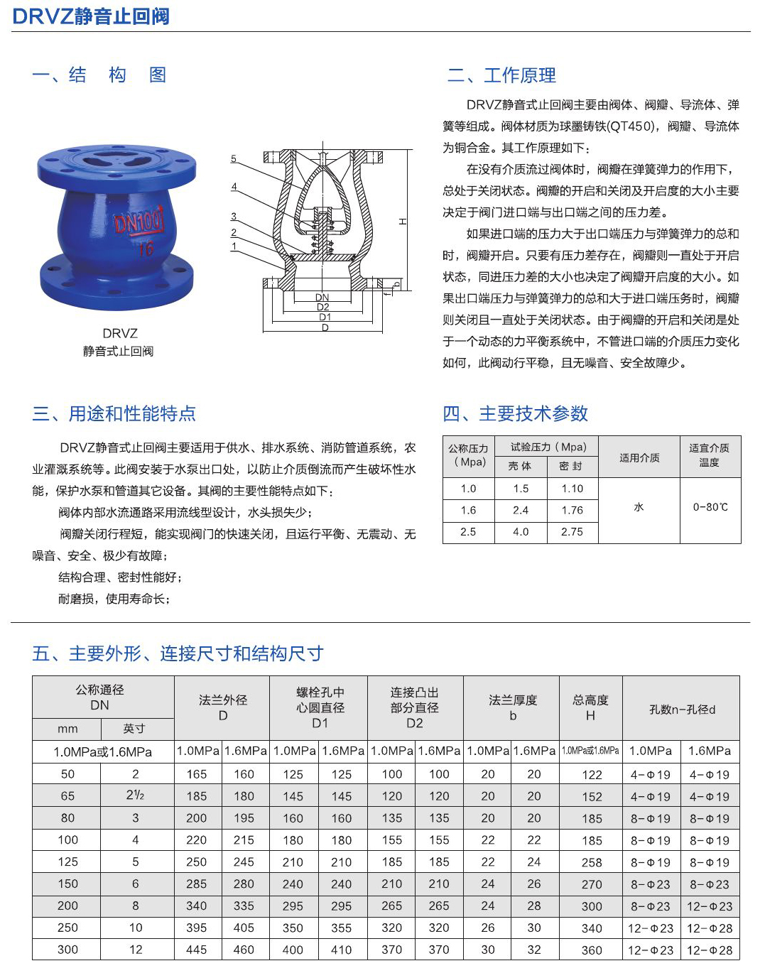 - 主要適用于供水、排水系統(tǒng)、消防管道系統(tǒng),農(nóng)業(yè)灌溉系統(tǒng)等。此閥安裝于水泵出口處,以防止介質(zhì)倒流而產(chǎn)生破壞性水能,保護水泵和管道其它設備。