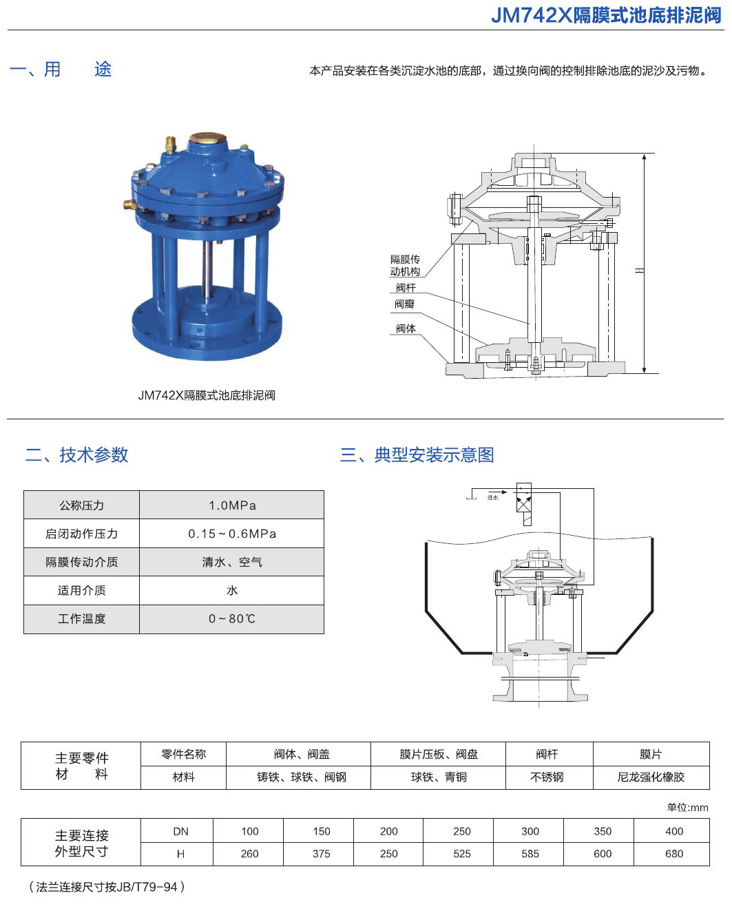 - 本產(chǎn)品安裝在各類沉淀水池的底部,通過換向閥的控制排除池底的泥沙及污物。