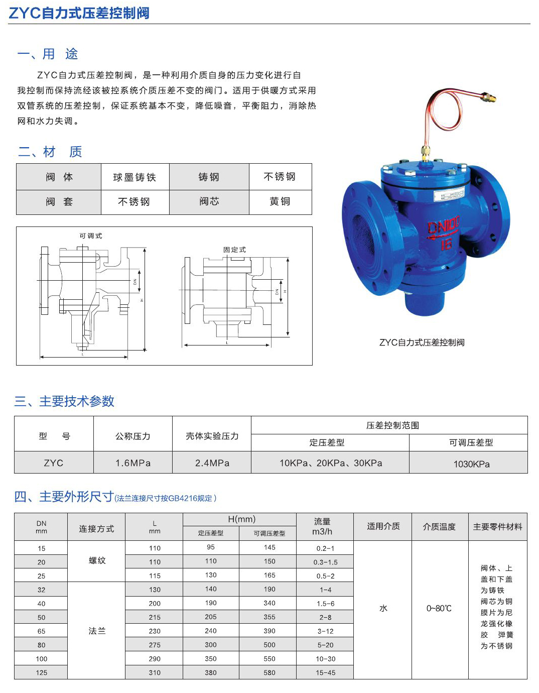 - ZYC自力式壓差控制閥,是一種利用介質(zhì)自身的壓力變化進(jìn)行自我控制而保持流經(jīng)該控系統(tǒng)介質(zhì)壓差不變的閥門。