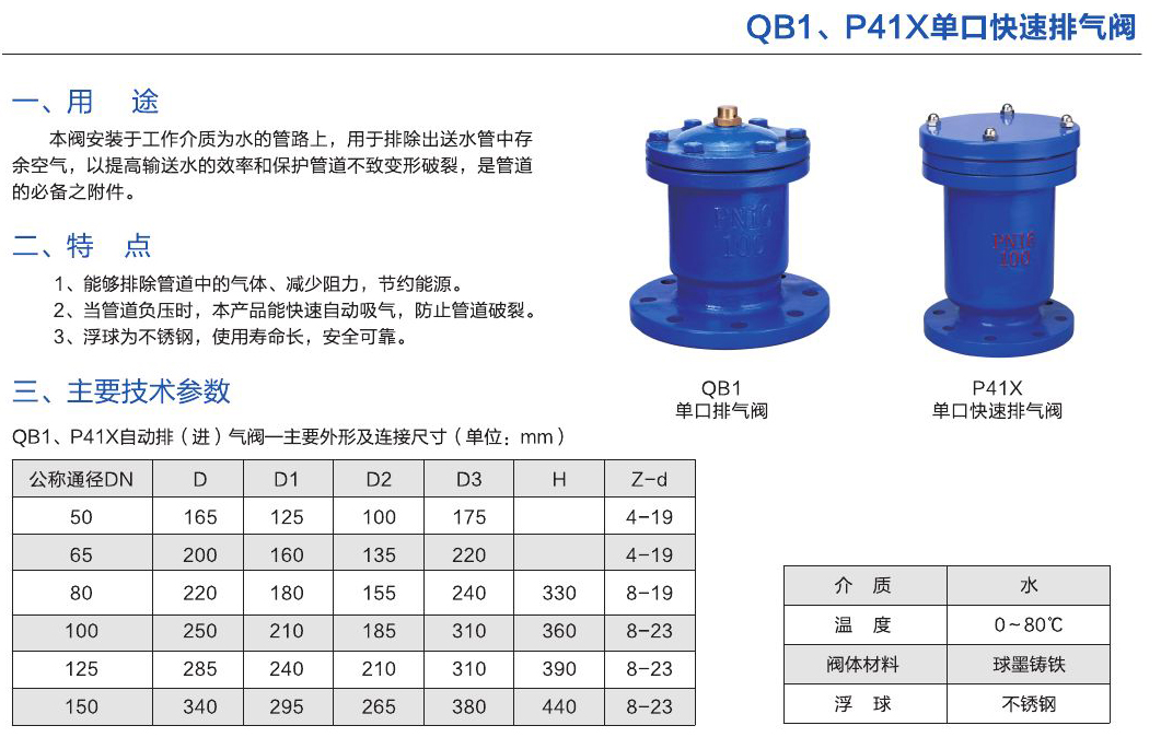 - 本閥安裝于工作介質(zhì)為水的管路上,用于排除出送水管中存余空氣,以提高輸送水的效率和保護(hù)管道不致變形破裂,是管道的必備之附件。