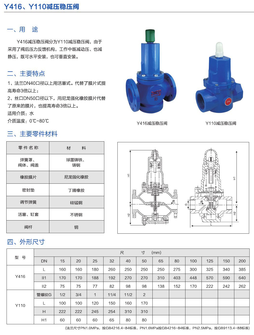 - Y416減壓穩(wěn)壓閥分為Y110減壓穩(wěn)壓閥,由于采用了閥后壓力反饋機構(gòu),工作中既減動壓、也減靜壓,既可水平安裝,也可垂直安裝。