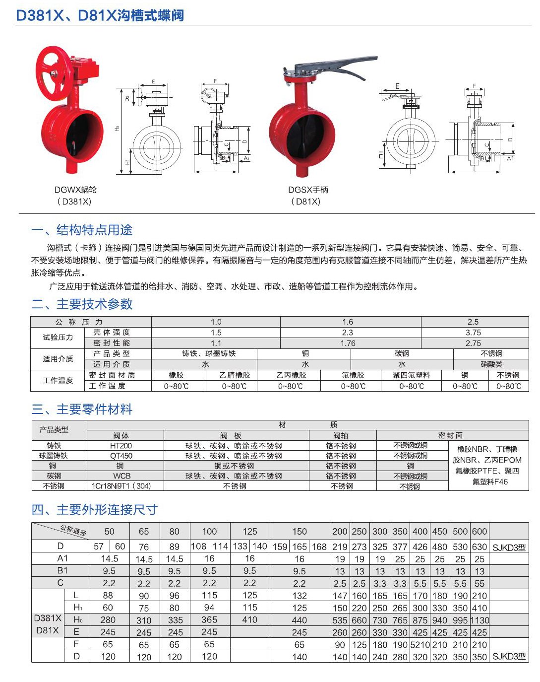 - 溝槽式(卡箍)連接閥門是引進美國與德國同類先進產(chǎn)品而設(shè)計制造的一系列新型連接閥門。它具有安裝快速、簡易、安全、可靠、不受安裝場地限制、便于管道與閥門的維修保養(yǎng)。有隔振隔音與一定的角度范圍內(nèi)有克服管道連接不同軸而產(chǎn)生仿差,解決溫差所產(chǎn)生熱賬冷縮等優(yōu)點。