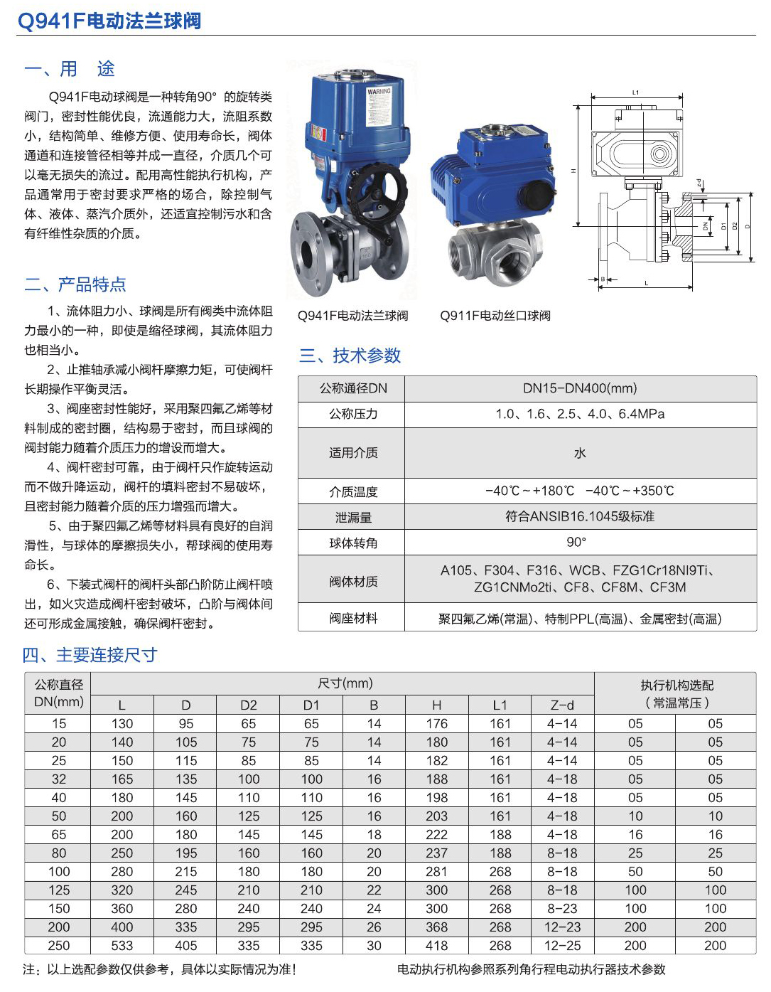 - Q941F電動球閥是一種轉(zhuǎn)角90度的旋轉(zhuǎn)類閥門,密封性能優(yōu)良,流通能力大,流阻系數(shù)小,結(jié)構(gòu)簡單、維修方便、使用壽命長,閥體通道和連接管徑相等并成一直徑,介質(zhì)幾個可以毫無損失的流過。